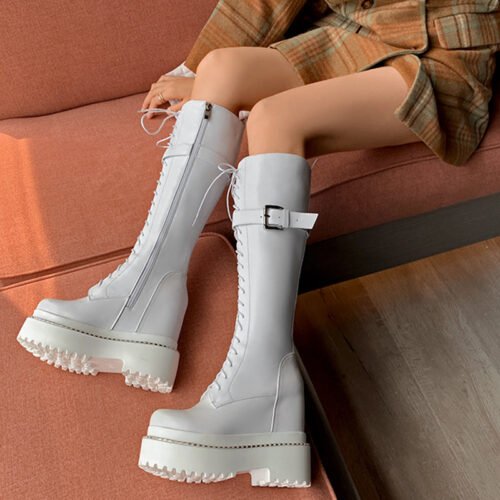 Men’s High Top Long Platform Side Zip Biker Boots