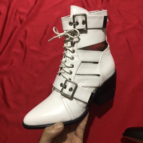 Belt Buckle Chunky Heels Pointed Toe Martin Boots Plus Size Shoes